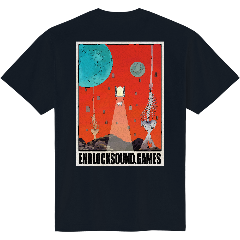 バックにイラストがプリントがされたワンサイズTシャツ
